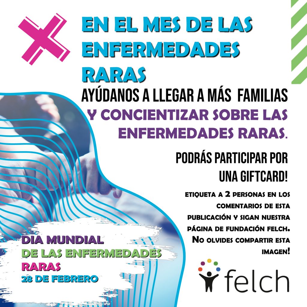 ANÍMATE A PARTICIPAR !! Para Concientizar y Visibilizar las Enfermedades Poco Frecuentes.Qué debés hacer: 1- Seguir estás páginas:Fundación Felch@fundacionfelch2-Dale me gusta al post3-Etiquetar a dos amig@s – Las personas que etiquetes también deben seguir nuestras páginas. ÉXITOS