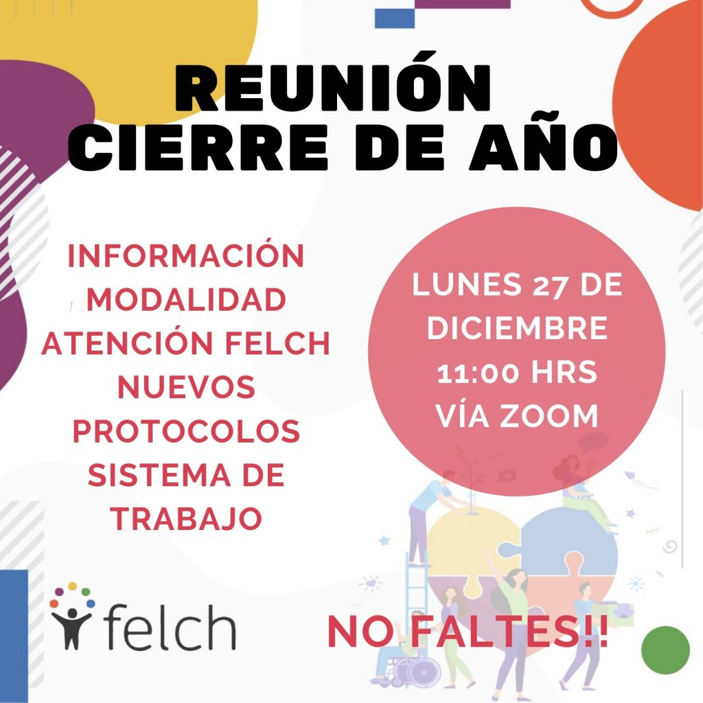 Querida familia Felch, los invitamos a participar de la reunión de cierre de año, se realizará el día lunes 27 de diciembre a las 11 hrs, vía zoom.Los esperamos !!